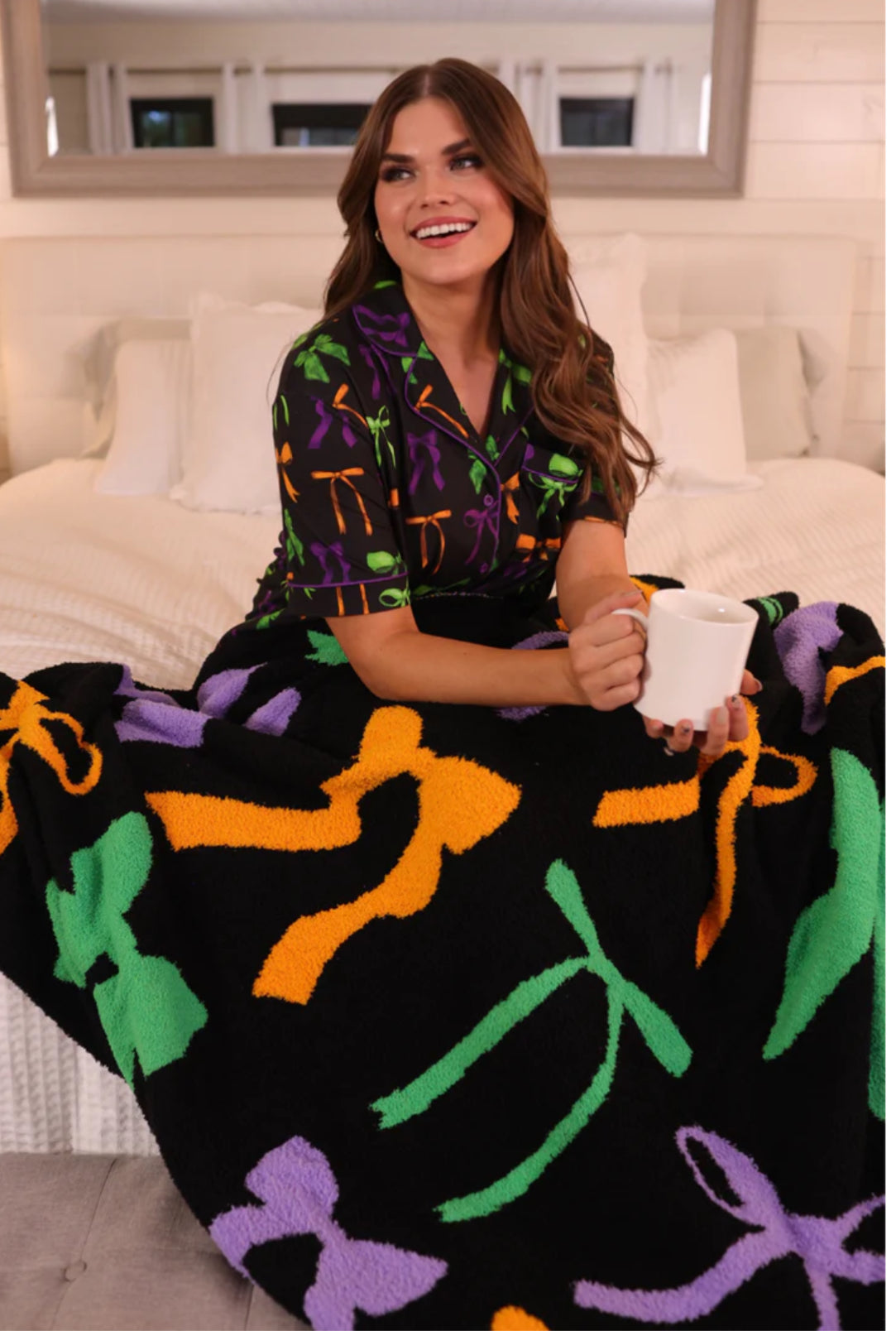 Stay cozy and stylish with our Bow Bewitched Blanket. Featuring a fun themed bow print, this blanket is perfect for adding a playful touch to any room. Order now and be the first to enjoy this unique and eye-catching addition to your home decor.