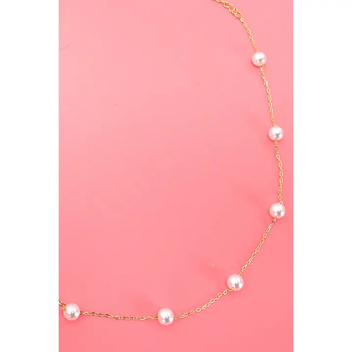 Titanium Steel Non-Tarnish Pearl Station Necklace